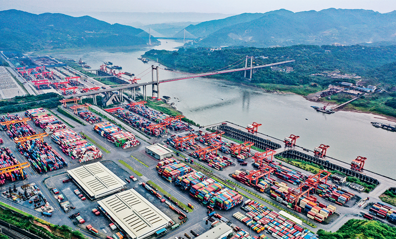 我国积极推进贸易便利化,加快培育外贸增长新动能,切实推动外贸稳规模优结构,货物进出口增速逐月提升。图为2023年4月20日拍摄的重庆果园港。今年一季度,果园港区完成货物吞吐量619万吨,同比增长9.9%。 新华社记者 唐奕/摄