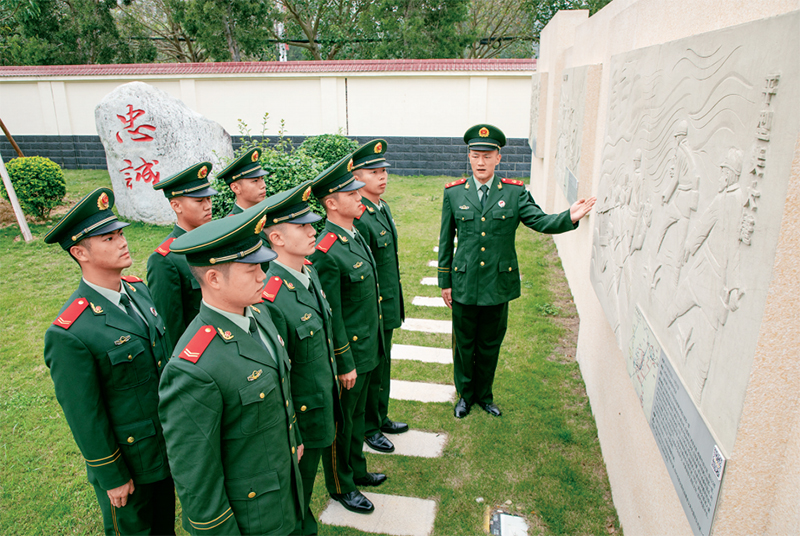 图为2023年4月5日,武警广西总队北海支队组织缅怀英烈主题活动,红色宣讲员为官兵讲述战役故事。 新华社发 梁承杰/摄