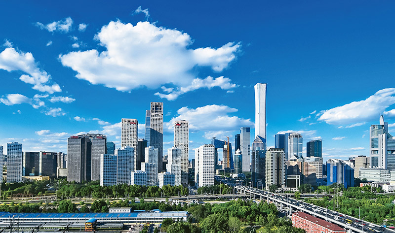 北京商务中心区(CBD)作为国际交往的重要窗口,区域内国际化资源丰富、商务配套成熟、科技创新土壤深厚,是国际贸易合作的重要阵地。图为蓝天白云下的北京商务中心区。 北京日报记者 邓伟/摄