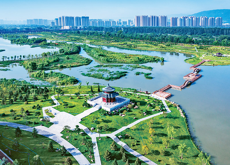图为汾河生态修复治理四期工程——望岳阁段全景。 太原市汾河景区管理委员会供图