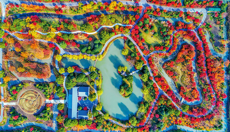 图为2022年11月,上海市金山区朱泾镇待泾村“花开海上”生态园五彩斑斓、秋意正浓。 金山区朱泾镇党委供图