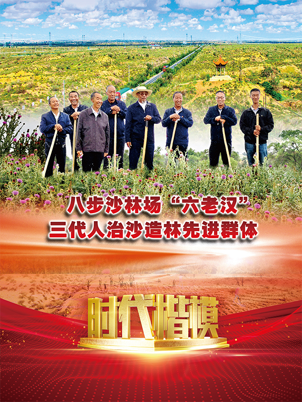 八步沙林场“六老汉”三代人治沙造林先进群体,是“绿水青山就是金山银山”理念的忠实践行者,是荒漠变绿洲的接续奋斗者,他们以愚公移山精神生动书写了从“沙逼人退”到“人进沙退”的绿色篇章,为生态环境治理作出了重要贡献。