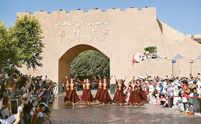 走在极具民族特色的新疆喀什古城中,鳞次栉比的商铺展陈着各类民族商品,精美的砖雕窗棂装扮着错落有致的民居,曲径通幽的小巷墙壁爬满绿色藤蔓植物,冬不拉和热瓦甫的和美乐音袅袅飘过耳畔……徜徉流连于街巷,让人感动于古城居民的灿烂笑颜,感叹于历史与现代的和谐共融,感怀于丝路古道的千年遗韵。
