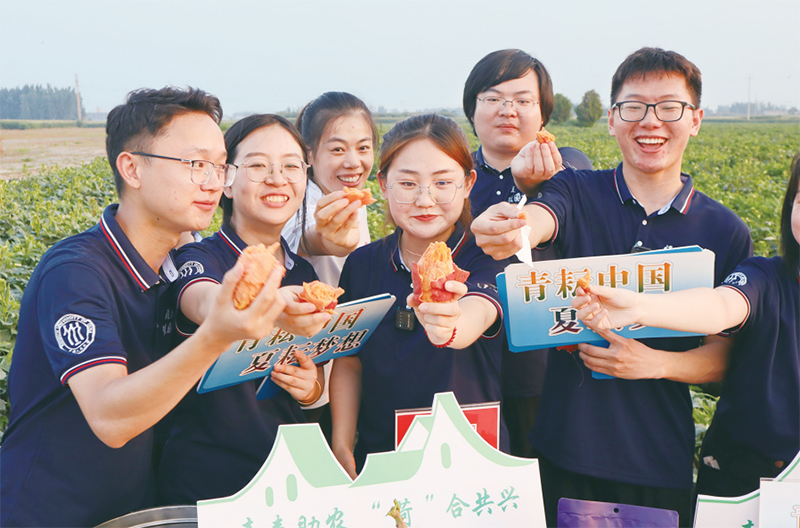 图为2023年暑期,中国人民大学博士生服务团在山东菏泽围绕“人才产业融合发展赋能乡村振兴路径探索”课题进行调研,并开展“青耘中国·夏耘梦想”公益助农直播活动。 中国人民大学供图
