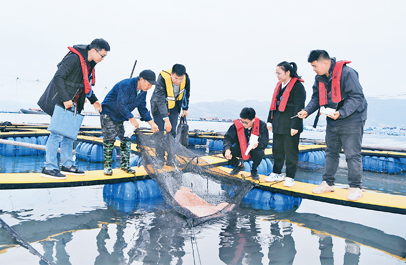 作为全国“枫桥式工作法”入选单位,福建省宁德市霞浦县溪南镇因地制宜打造新时代海上“枫桥经验”,实现“小事不出排、大事不上岸、矛盾不上交”,有力维护海域平安和谐。图为2023年11月14日,溪南镇七星海上社区工作人员在辖区渔排走访,了解海上养殖户需求。 新华社记者 姜克红/摄
