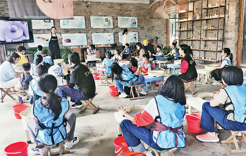 图为2023年4月16日,在东仲都村陶朱工坊,学生们正体验泥塑制作。 济宁市泗水县委宣传部供图