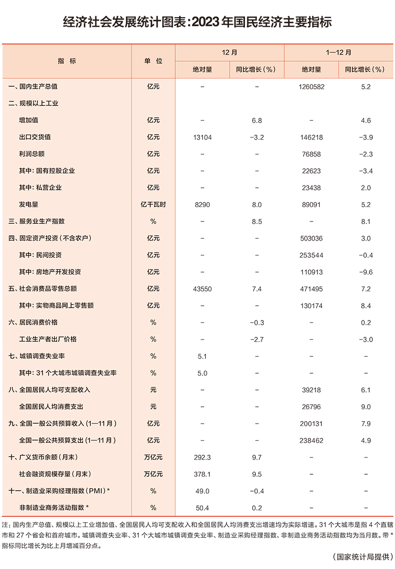 经济社会发展统计图表:2023年国民经济主要指标
