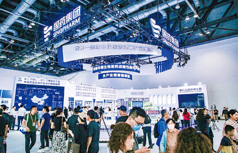 2023年中国国际服务贸易交易会于9月2日至6日在北京举办,国药集团在国家会议中心设立展位,向全球展示旗下医药供应链服务、生物制药、现代中药等业务发展成就及最新科研进展。图为人们在国药集团展台参观。 国药集团供图