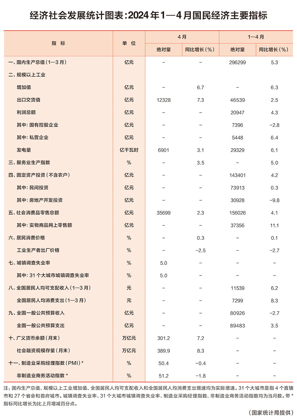经济社会发展统计图表:2024年1—4月国民经济主要指标
