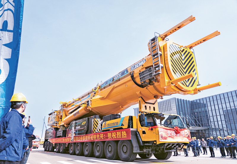 图为2024年3月6日,徐工集团自主研发的全球最大4000吨轮式起重机XCA4000成功交付。 徐工集团供图