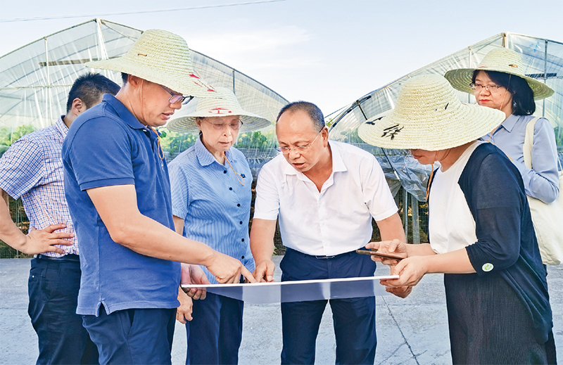 图为2022年7月,徐利民(右三)和相关专家实地察看上山遗址博物馆选址区块。 张国萍/摄