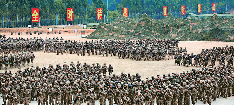 在强军新征程上,全军官兵以时不我待的紧迫感踔厉奋发、勇毅前行,共同跑出强军兴军加速度。图为陆军某旅训练场上一派生龙活虎的练兵场景。 解放军画报供图 张永进/摄