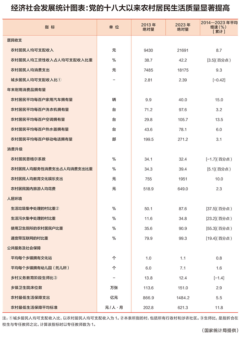 经济社会发展统计图表:党的十八大以来农村居民生活质量显著提高