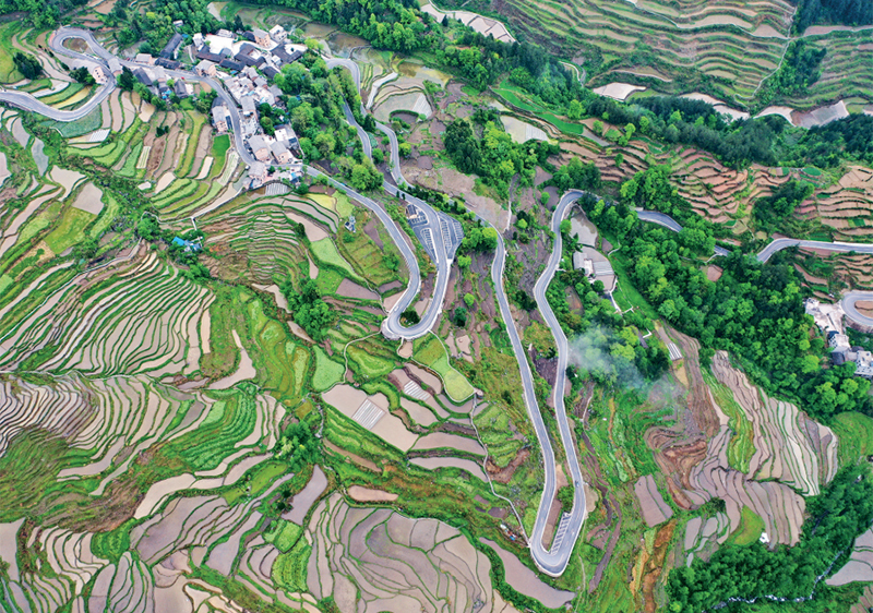 乡村振兴,道路先行。“四好农村路”通村畅乡,为全面打赢脱贫攻坚战、全面建成小康社会提供了坚实保障。图为2024年4月27日,重庆市酉阳土家族苗族自治县花田乡的通村公路。 重庆市酉阳土家族苗族自治县融媒体中心、县交通运输委员会供图