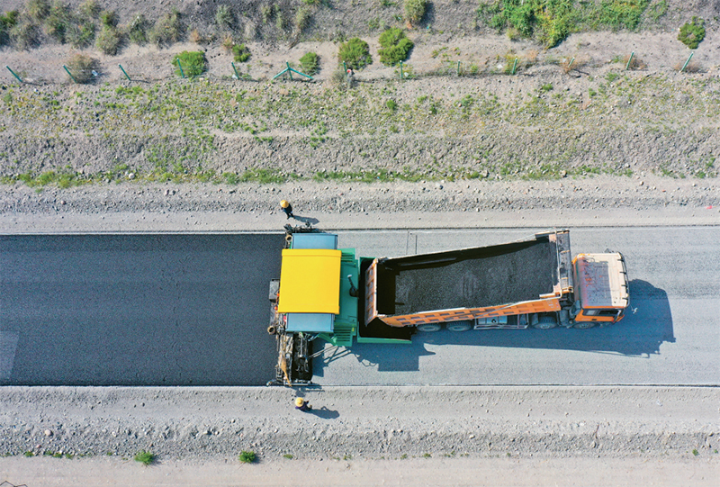 近年来,我国加快推进农村交通基础设施提档升级,农村地区交通运输服务品质不断改善。图为2024年6月27日,新疆博尔塔拉蒙古自治州精河县2024年农村公路车购税“以奖代补”资金建设项目(联网路)第二合同段正在进行铺油。 新疆博尔塔拉蒙古自治州精河县交通运输局供图