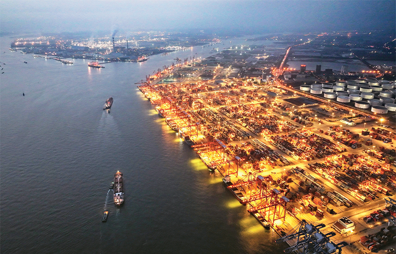 图为2024年5月9日拍摄的夜幕下的钦州港码头。 新华社记者 张爱林/摄
