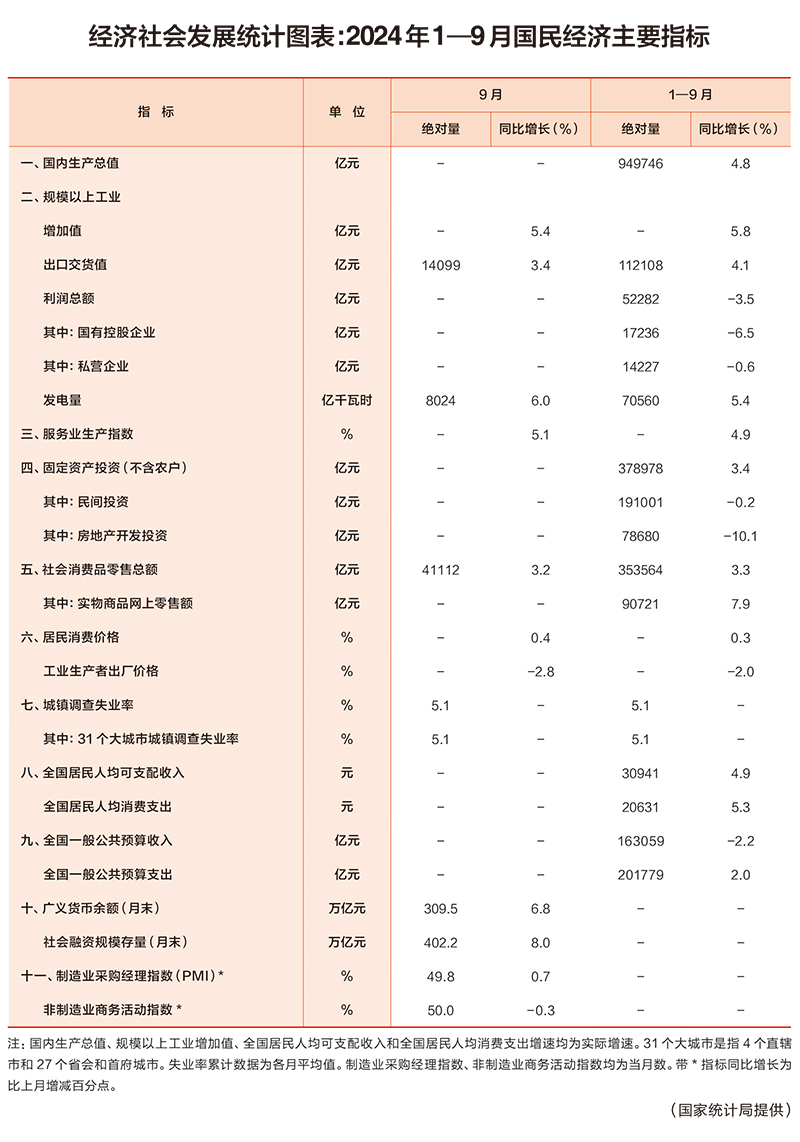 经济社会发展统计图表:2024年1—9月国民经济主要指标