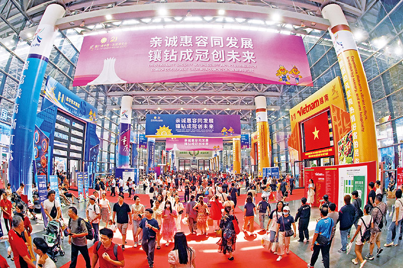 2024年9月24—28日,第21届中国—东盟博览会暨中国—东盟商务与投资峰会在广西南宁举行。本届东博会和峰会在服务构建中国—东盟命运共同体、助推中国—东盟自贸区3.0版顺利启航、深化中国—东盟人文交流等多方面取得丰硕成果,助力广西在区域合作中的影响力与日俱增。图为9月27日拍摄的东博会现场。 广西日报社供图 梁凯昌/摄