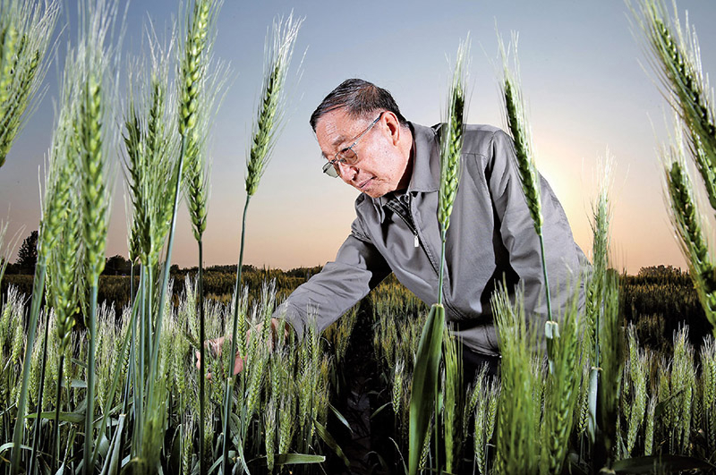 李振声是我国小麦远缘杂交育种奠基人和农业发展战略专家,系统研究小麦与偃麦草远缘杂交并育成了“小偃”系列品种,开创了小麦远缘杂交品种在生产上大面积推广的先例。他创建了蓝粒单体小麦和染色体工程育种新系统,开辟了小麦磷、氮营养高效利用的育种新方向。他组织实施农业科技“黄淮海战役”、提出并推动“渤海粮仓”项目建设,为促进我国粮食增产、保障国家粮食安全发挥了重要作用。