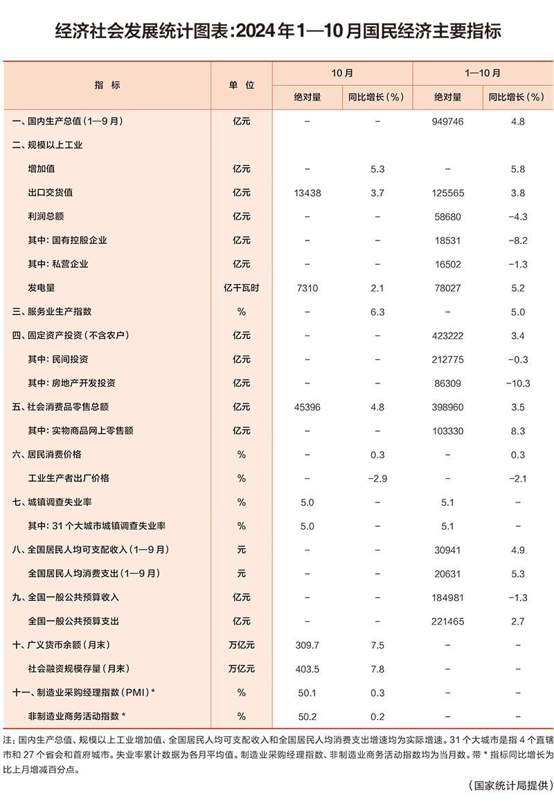 经济社会发展统计图表:2024年1—10月国民经济主要指标