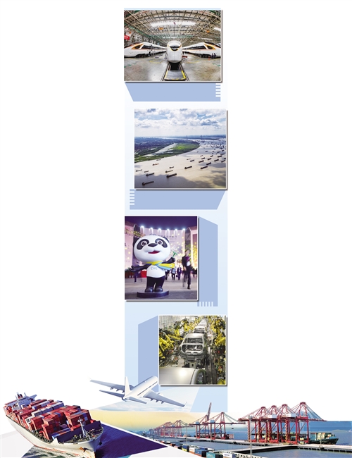 中车唐山机车车辆有限公司工人在复兴号动车组生产线上工作。新华社记者 杨世尧摄 船舶在湖北武汉阳逻港区水域行驶。新华社记者 肖艺九摄 人们在上海举行的首届中国国际进口博览会上参观。新华社记者 孟鼎博摄 位于河北沧州的北京现代沧州工厂生产线。新华社记者 牟 宇摄