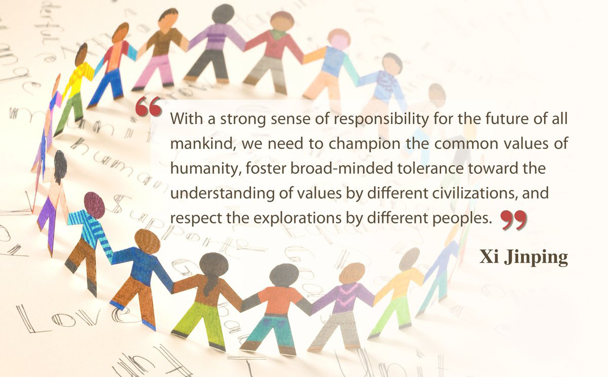 我们要本着对人类前途命运高度负责的态度,做全人类共同价值的倡导者,以宽广胸怀理解不同文明对价值内涵的认识,尊重不同国家人民对价值实现路径的探索。