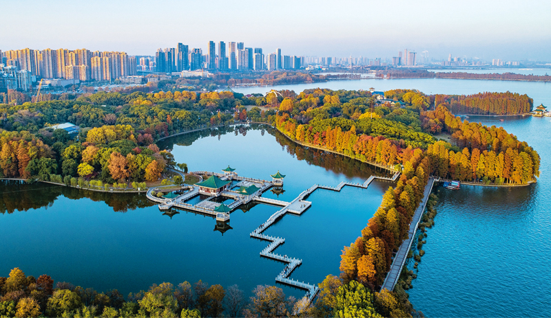 无人机拍摄的湖北省武汉市东湖绿道。新华社记者 肖艺九/摄
