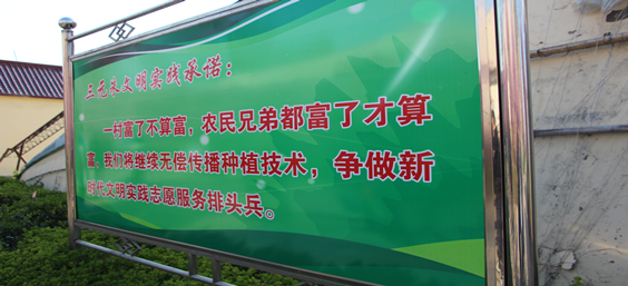 “一村富了不算富,农民兄弟都富了才算富,我们将继续无偿传播种植技术,争做新时期文明实践志愿服务排头兵。”这是三元朱村文明实践承诺。
