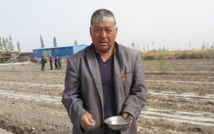 党员司马义·那斯尔在田间帮忙种植团结瓜 赵雯/摄