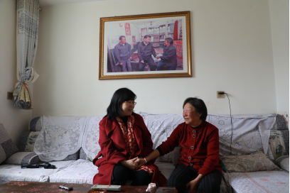 刘福有、王三女、曹六仁三位老人,是总书记在赵家洼村看望过的村民。走进他们的新客厅,第一眼吸引我们的就是他们与总书记大大的合影照片,一幅、两幅,王三女大妈家挂了三幅同样的照片,因为开始感觉洗小了,就一次一次冲洗更大的照片,挂满房间才心满意足。