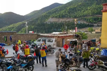 布珠客栈院内骑友聚集 雅江县宣传部供图