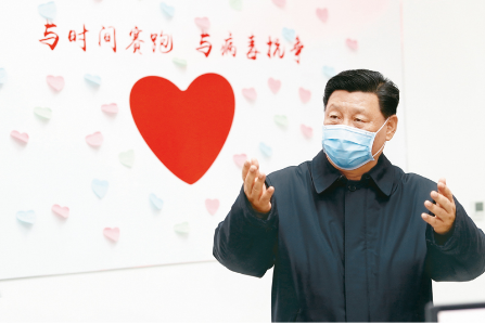 把人民群众生命安全和身体健康放在第一位,把疫情防控工作作为当前最重要的工作来抓,号召全国坚决打赢疫情防控的人民战争、总体战、阻击战——在以习近平同志为核心的党中央坚强领导下,亿万中国人民众志成城、团结奋战,凝聚成齐心战“疫”的硬核力量。