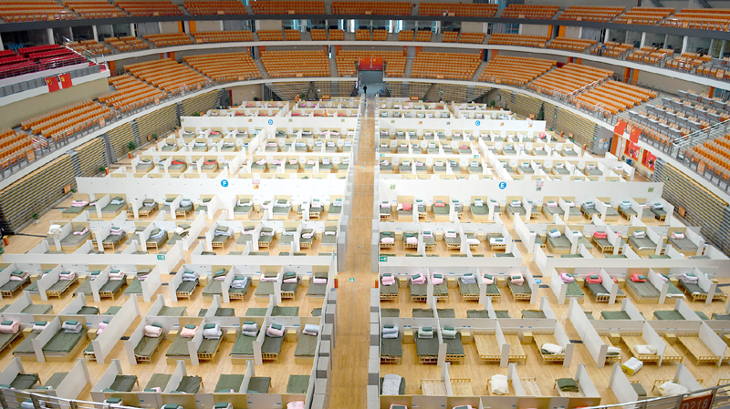 2月12日,武汉体育中心“方舱医院”具备收治条件,这里将提供1100张医疗床位,收治新型冠状病毒肺炎轻症患者。 新华社记者 程敏/摄