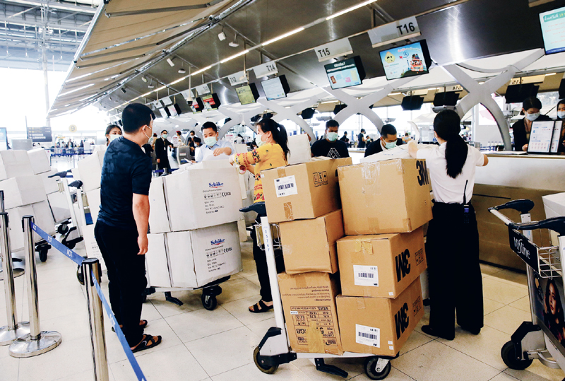 2020年1月31日,泰国华侨华人爱心人士捐赠的一批防护服、口罩等物资在曼谷素万那普机场办理手续准备运往武汉。新冠肺炎疫情暴发以来,泰国许多华人华侨和中资企业纷纷采购抗疫物资捐赠武汉相关机构。 中新社记者 王国安/摄