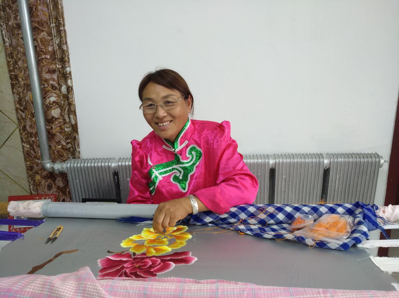 白吉林白乙拉的妻子刘孟兰2017年开始学习刺绣,参加过政府举办的几次培训,现已成为一级“绣娘”。两年多来,刘孟兰仅刺绣一项收入达4万多元,真正从绣花针里找到了生财之道,实现了足不出户增产增收。嘎查里的刺绣车间,已经有90多名妇女从事刺绣行业。积淀着厚重文化记忆的蒙绣,也走进景区成为最热卖点之一,成为科右中旗的一张名片。如今的白吉林白乙拉,种着地,养着牛,当着护林员,房子宽敞明亮,孩子大学毕业,他顺利脱贫,过上了吃穿不愁、住房教育医疗都有保障的好日子。