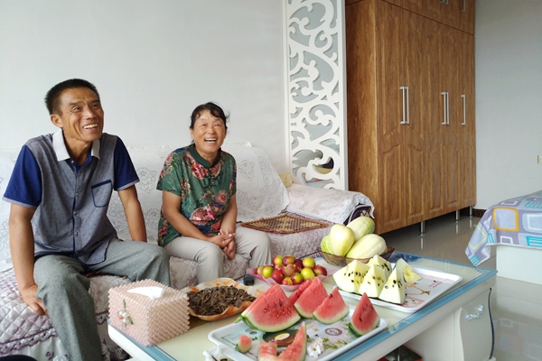 颜丙玉、姜玉珍老两口是内蒙古通辽市开鲁县东风镇东七家子村的普通农民,在国家政策扶助和当地政府的主导下,他们这些年的生活有了可喜的变化。他们家有40亩地,其中7亩沙果树位于东风镇万亩果品经济林示范基地,林间间作辣椒。除了经济林,他们家还种植绿豆、玉米,平均每年有7万多元收入。家中庭院占地4亩,盛夏时节满园郁郁葱葱,生机盎然。“我觉得,现在做农民挺好,看我家院子多大,吃菜用水都不花钱。园子里的菜,没有化肥和农药,想摘哪个摘哪个。在城里买个别墅才多大?”姜玉珍真诚的话语透着幸福和满足,一下子把大家逗乐了。
