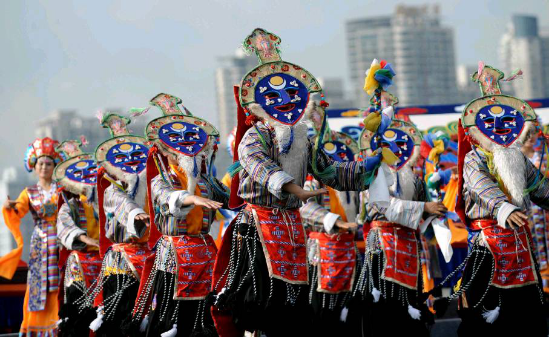 从1949年《中国人民政治协商会议共同纲领》将民族区域自治确定为新中国的一项基本政策,到1984年通过民族区域自治法,实现政策、制度、法律三位一体,我国的民族区域自治制度不仅巩固了平等、团结、互助、和谐的社会主义民族关系,也为少数民族和民族地区发展奠定了腾飞的基石。图为2010年9月1日,来自西藏自治区的演员在上海世博园庆典广场表演藏戏歌舞。新华社记者 蔺以光/摄