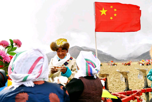 春风抚雪域,万物复苏时。在打赢脱贫攻坚战、全面建成小康社会的决胜之年,西藏迎来了百万农奴解放61周年。图为2020年3月16日,村民参加拉萨市达孜区唐嘎乡唐嘎村春耕仪式。新华社记者 张汝锋/摄