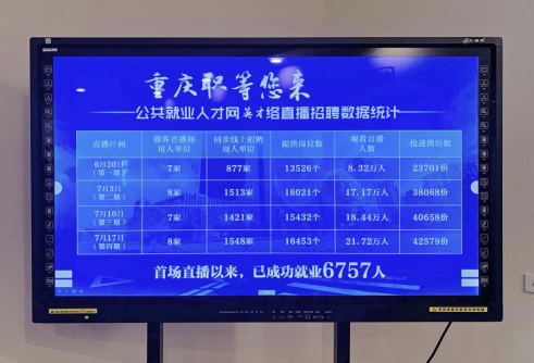 图为2020年7月24日拍摄的“重庆英才·职等您来”公共就业人才网络直播招聘数据统计。求是记者 唐淑楠/摄