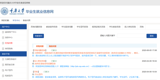 图为重庆大学毕业生就业信息网。重庆大学宣传部提供