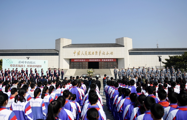 2019年4月4日,“清明节的铭记——尊崇英雄烈士 厚植家国情怀”主题教育系列活动启动仪式在北京中国人民抗日战争纪念馆举行。活动内容包括主题团(队)活动、清明寄语墙、抗战主题音乐会、网上祭奠、志愿者专题讲解等。 新华社记者 张晨霖/摄