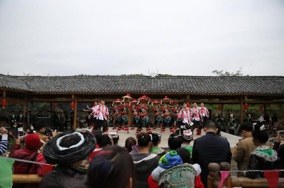 陈双村的毛南族、苗族及瑶族群众齐心协力发展乡村旅游,村里群众为来村里体验农家乐的游客献上民族歌舞表演。 环江县委宣传部供图