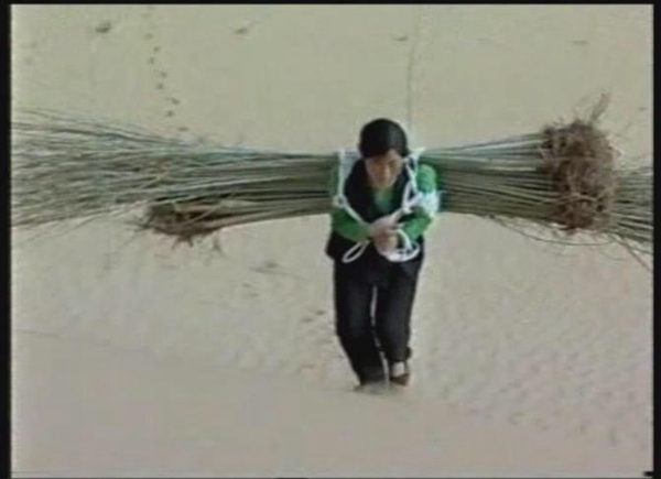 漫漫十里黄沙,居住着一户人家,举目四望,全是单调而毫无生机的明沙。每当风起,便是漫天黄沙,吹得看不见人,睁不开眼。要生存就要在这荒凉的大漠里与大自然展开搏斗,向沙子要地、要树、要草场。殷玉珍暗下决心:宁肯种树累死,也不叫风沙欺负死!