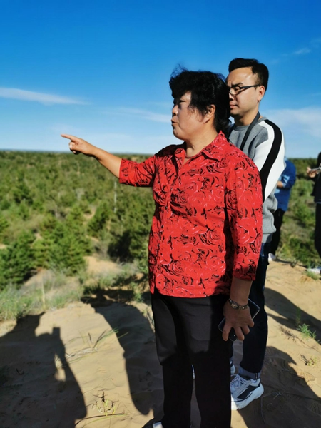 “这里以前是一片沙漠,如今是万顷的林海。站在梁上,一眼望到都是我的林子,就像我的孩子一样,它们就是我的希望。”站在环喜梁上,望着周围大片林子,殷玉珍的眼睛里闪烁着光芒。