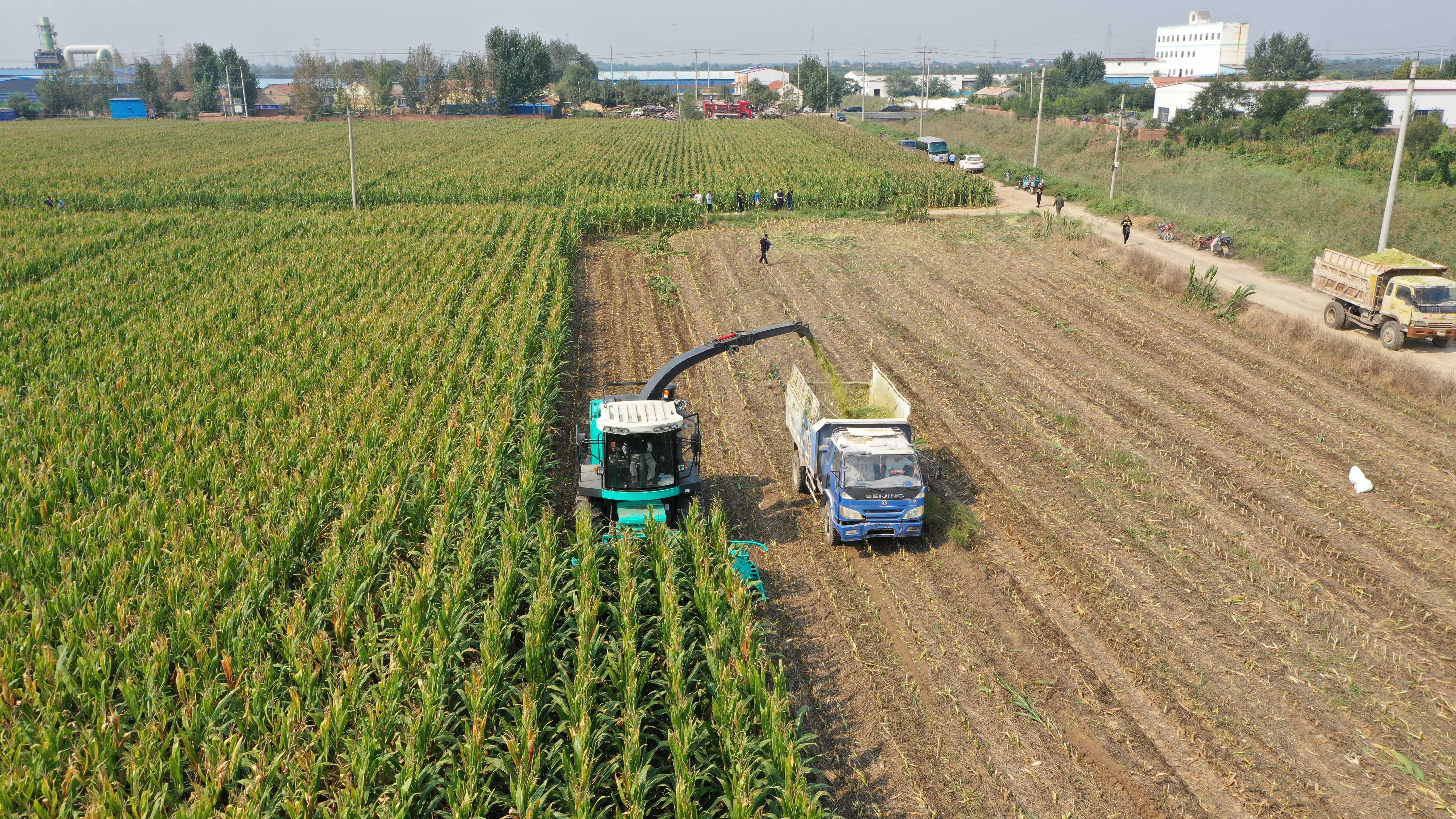 图为2020年9月22日,山东省阳信县青储饲料收割现场。 阳信县委宣传部 张勇/摄