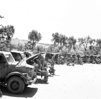 抗美援朝时期,中国人民志愿军运输部队克服一切困难,为前方运送各种物资。图为运输部队的战士们在检查车辆(1952年6月摄)。新华社发