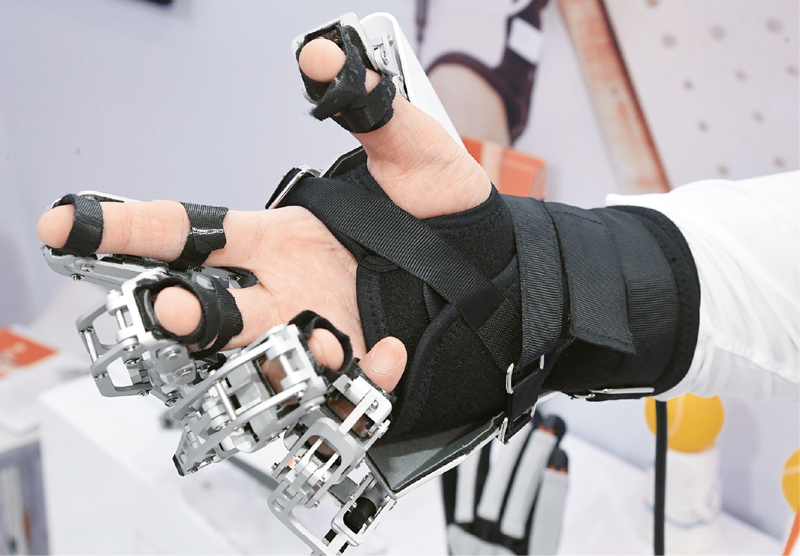2020年中国国际服务贸易交易会9月4日至9日在北京举行。展会期间,众多新技术新成果亮相展示,领域涵盖人工智能、物联网、智慧家居等各类技术、服务在生活中的应用,让观众体验贴心的服务,感受科技助力美好生活。图为9月7日,工作人员在服贸会服务机器人专题展区展示手功能康复外骨骼机器手。它可用于帮助因神经肌肉骨骼系统受损造成手部运动功能障碍的患者进行康复训练。新华社记者 任超/摄