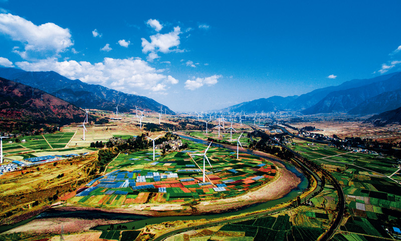 凉山州光能、风能等资源丰富,风电等产业变“动能”,帮助群众脱贫增收。图为凉山州德昌县安宁河峡谷的风电基地。 冷文浩/摄