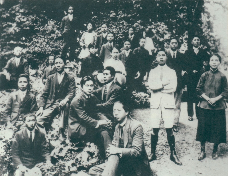1920年7月,赴法勤工俭学的新民学会会员在法国蒙达尔尼召开会议,讨论确定了新民学会的宗旨“改造中国与世界”。至于改造的方法,却意见分歧。蔡和森等主张接受马克思主义,主张组织共产党,走俄国式的革命道路;另一些会员则主张用教育作工具,实行“温和的革命”。8月,蔡和森、萧子升、李维汉等分别写信给毛泽东,陈述自己的观点。这是与会会员的合影。