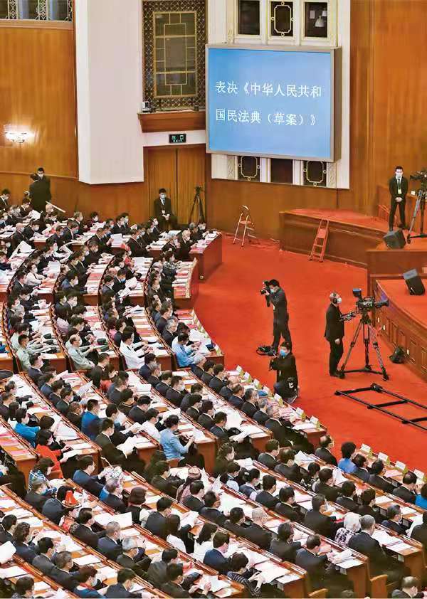 《中华人民共和国民法典》是新中国成立以来第一部以“法典”命名的法律,是新时代我国社会主义法治建设的重大成果。图为2020年5月28日,十三届全国人大三次会议表决《中华人民共和国民法典(草案)》。新华社记者 丁海涛/摄